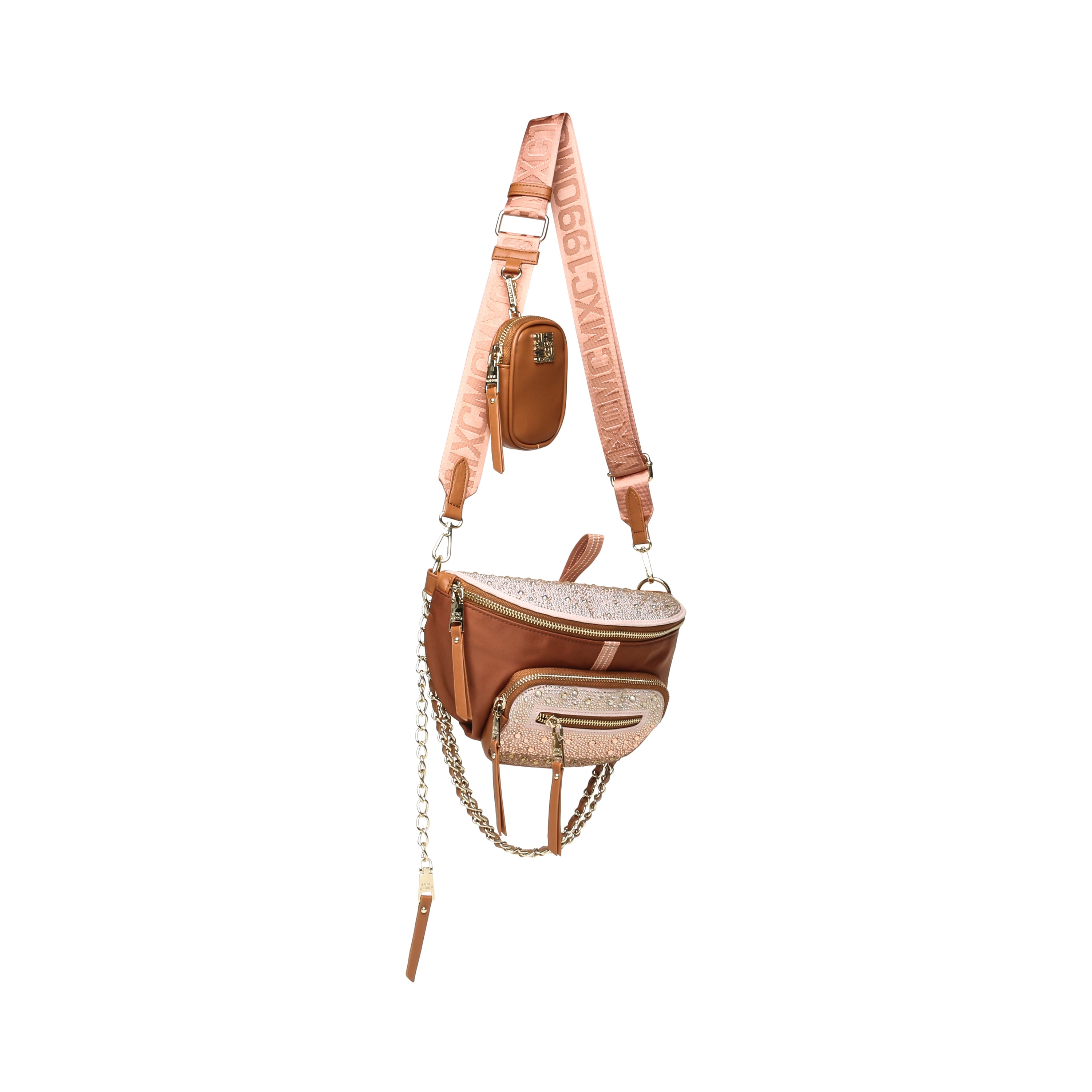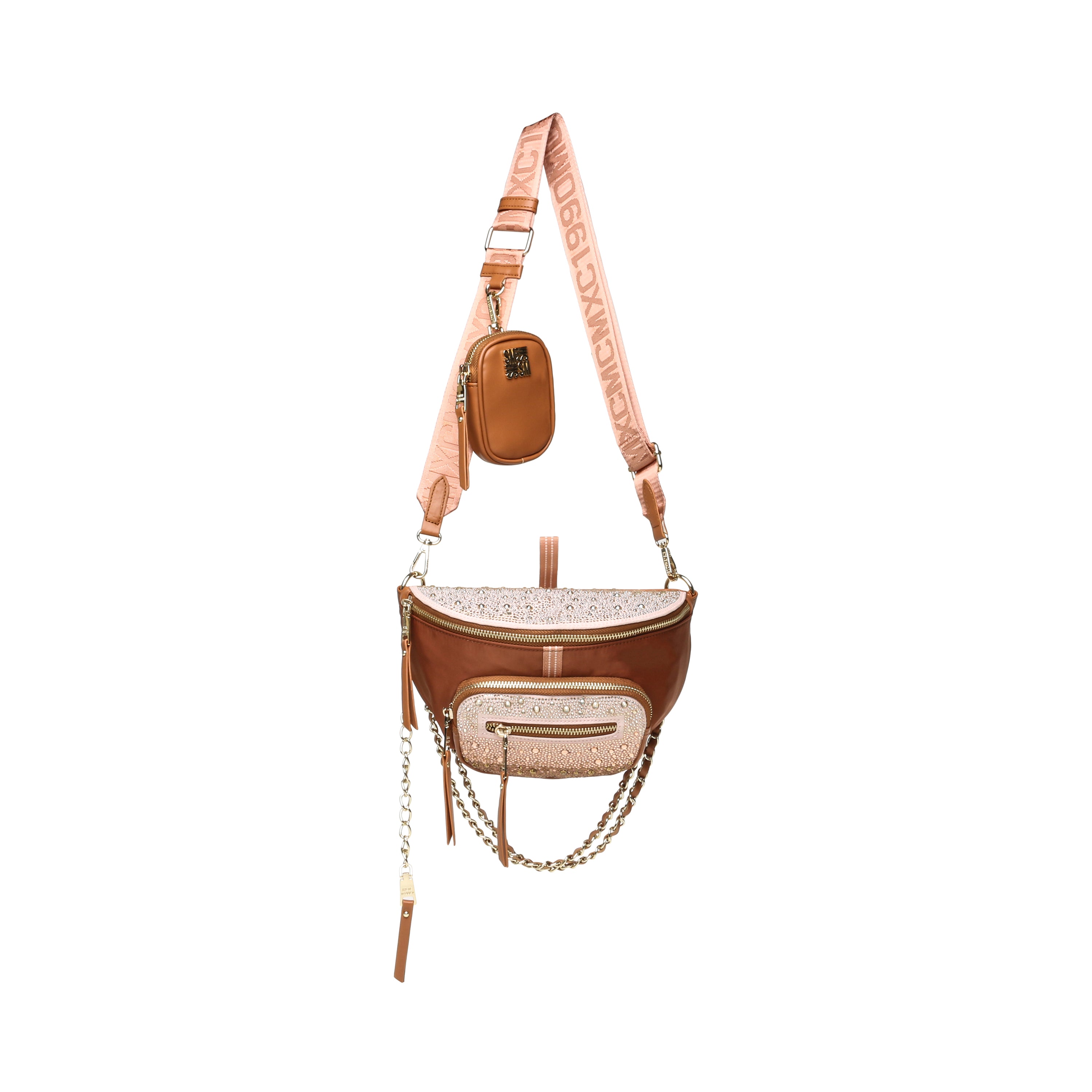 Conheçe a nossa mais recente edição, a BMISTICA! Não podes perder esta pochete coberta de pedras brilhantes, enquanto a corrente dourada lhe dá um toque extra. Esta bolsa tem vários compartimentos para guardar todas as tuas necessidades de forma elegante.